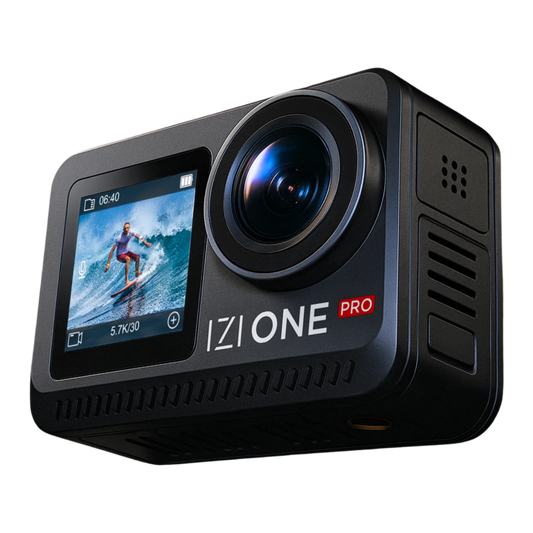 IZI ONE Plus 5K Action Camera – 6-Axis, 110ft Waterproof, Fast Charge