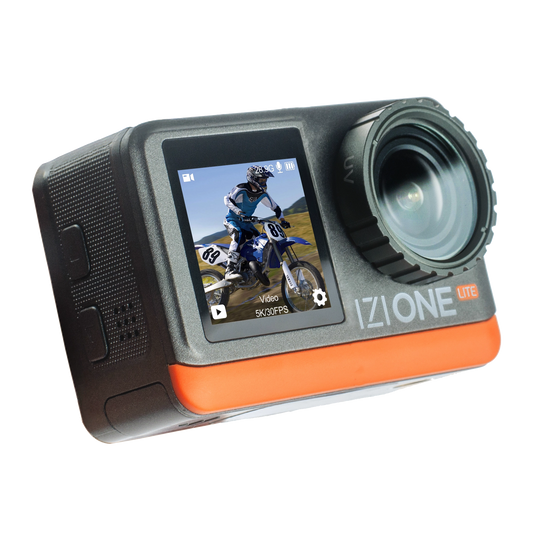IZI One Lite 5K Action Camera - 4K 60FPS 50MP Ultra HD Moto Vlogging Action Cam, Dual Screen, EIS Stabilization, 170° Wide Angle, 30M Waterproof, 2-Battery - 180 mins action, 256GB SD Card Support
