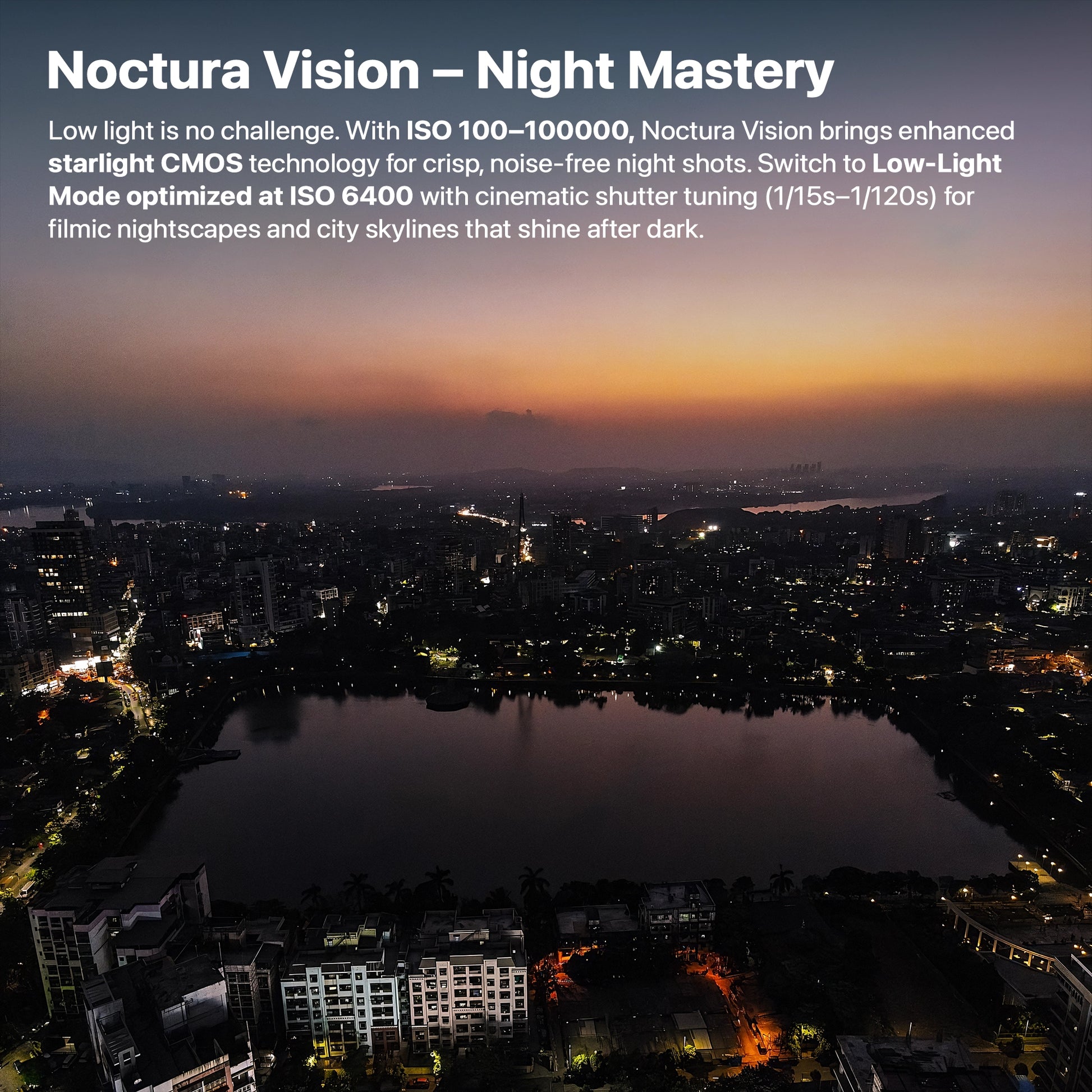 Noctura Vision Night Mode: Shoot vibrant, low-noise footage in starlight or low-light conditions with advanced night vision optimization.