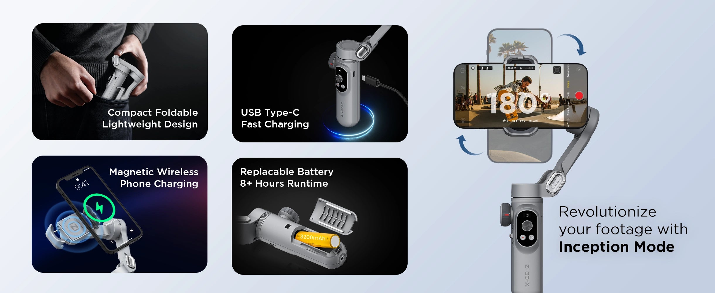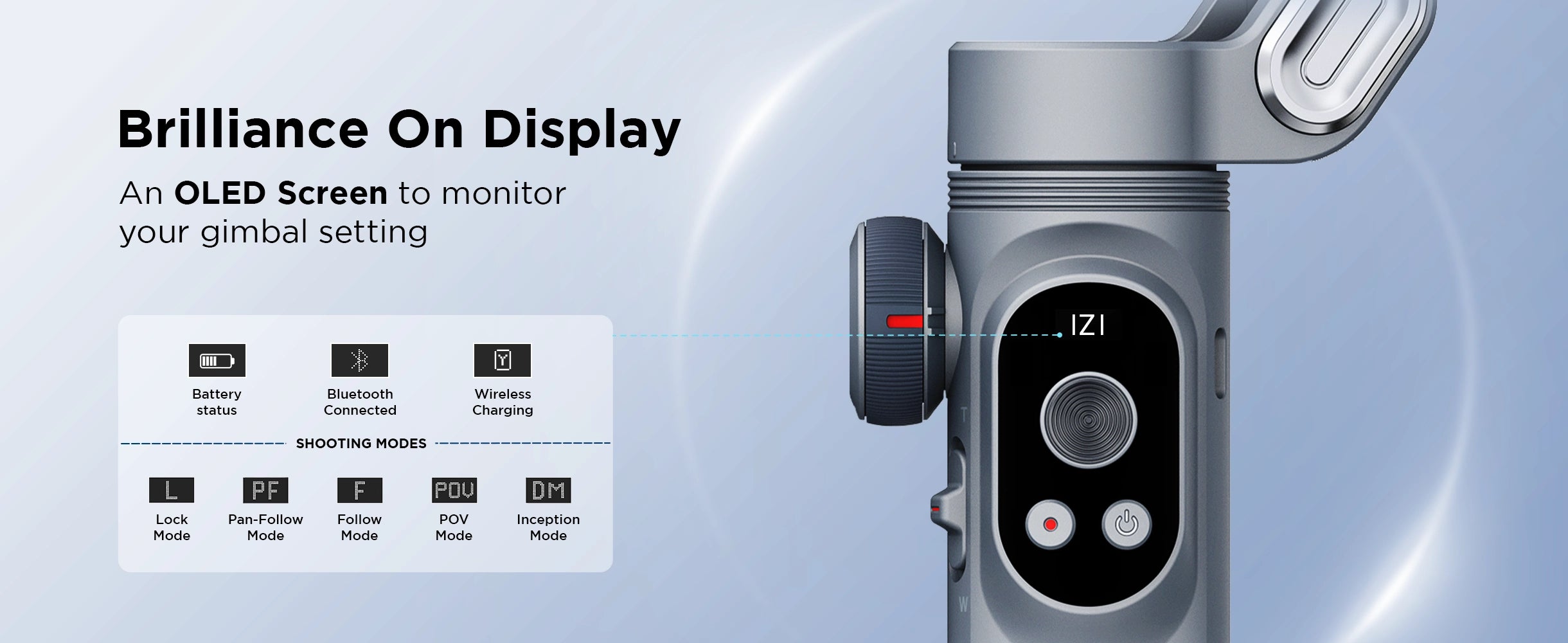 The IZI GO-X is the ideal companion for filmmakers, vloggers, and content creators seeking smooth, professional-grade stabilization with smart features and versatile shooting modes.